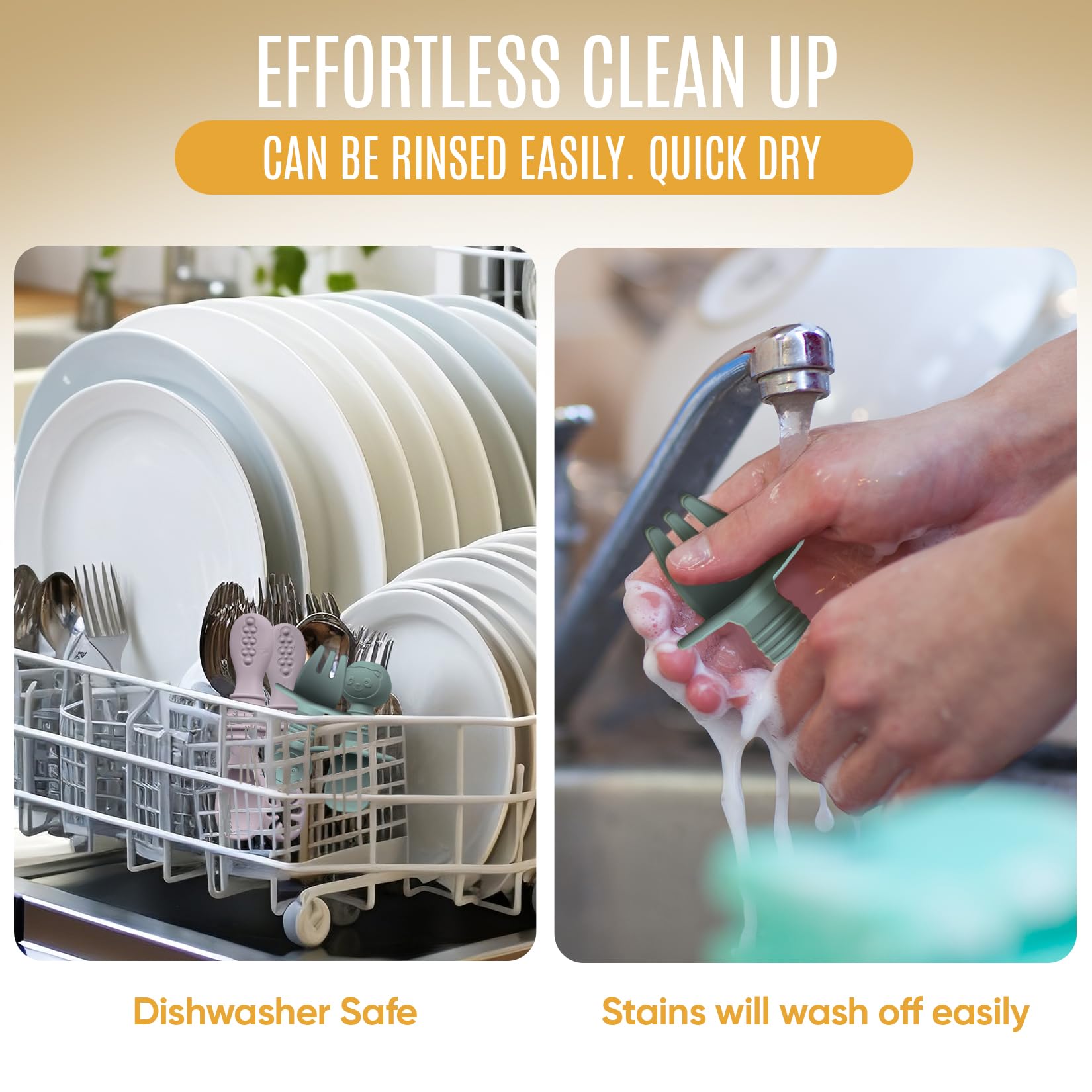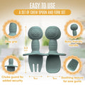 - EFFORTLESS CLEAN-UP: Made of high-quality food-grade silicone material, our baby silicone feeding set is very easy to clean up and will leave no stains. Simply, place the set in the dishwasher and they will come out clean and sanitized. These toddler spoons and forks are also lightweight and easy to hold, making it perfect for on-the-go meals.