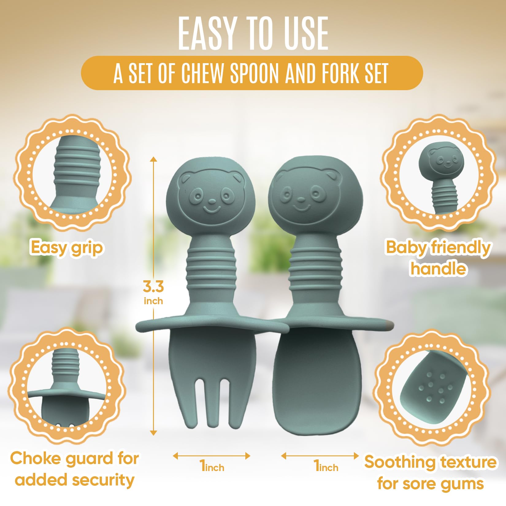 - FUN MEAL TIMES: The baby self feeding spoon and fork set comes in vibrant colors and cute animal shapes that will make mealtime fun for your little one. The silicone baby spoons self feeding 6+ months are soft and gentle on your baby's gums and teeth, making them safe for use from birth and textured design helps especially when they are teething. The First stage round head silicon spoon is great for soft and liquid foods.