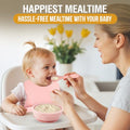 - HAPPY & MESS-FREE MEAL TIMES: Our baby suction bowl with suction firmly stick to any smooth surfaces, so you don’t have to worry about your toddler tipping over the bowl, creating spills and messes. The adjustable baby bib has a wide food-catching pocket that effectively catches spills to keep your baby’s clothes and surrounding clean.