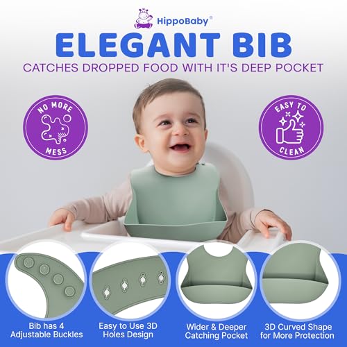 - HAPPY & MESS-FREE MEAL TIMES: Our baby suction bowl and baby plates with suction firmly stick to any smooth surfaces, so you don’t have to worry about your toddler tipping over the plates, creating spills and messes. The adjustable baby bibs have a wide food-catching pocket that effectively catches spills to keep your baby’s clothes and surrounding clean. The baby cutlery set and sip cup are made for your baby’s little hands for safe developmental milestone feeding!