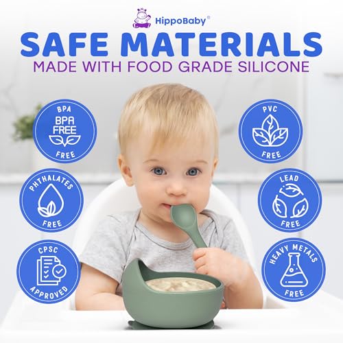 - SAFE FOR YOUR BABY: This baby feeding set is made of 100% food grade silicone material which is BPA-free, non-toxic, lead-free, phthalate-free, and PVC free, making our baby plates and bowls set absolutely safe and healthy for baby to eat and chew on. The little, cute spoon and fork have safety guards to prevent them from getting too far and are gentle on baby's delicate gums and teeth.