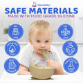 - SAFE FOR YOUR BABY: This baby feeding set is made of 100% food grade silicone material which is BPA-free, non-toxic, lead-free, phthalate-free, and PVC free, making our baby plates and bowls set absolutely safe and healthy for baby to eat and chew on. The little, cute spoon and fork have safety guards to prevent them from getting too far and are gentle on baby's delicate gums and teeth.
