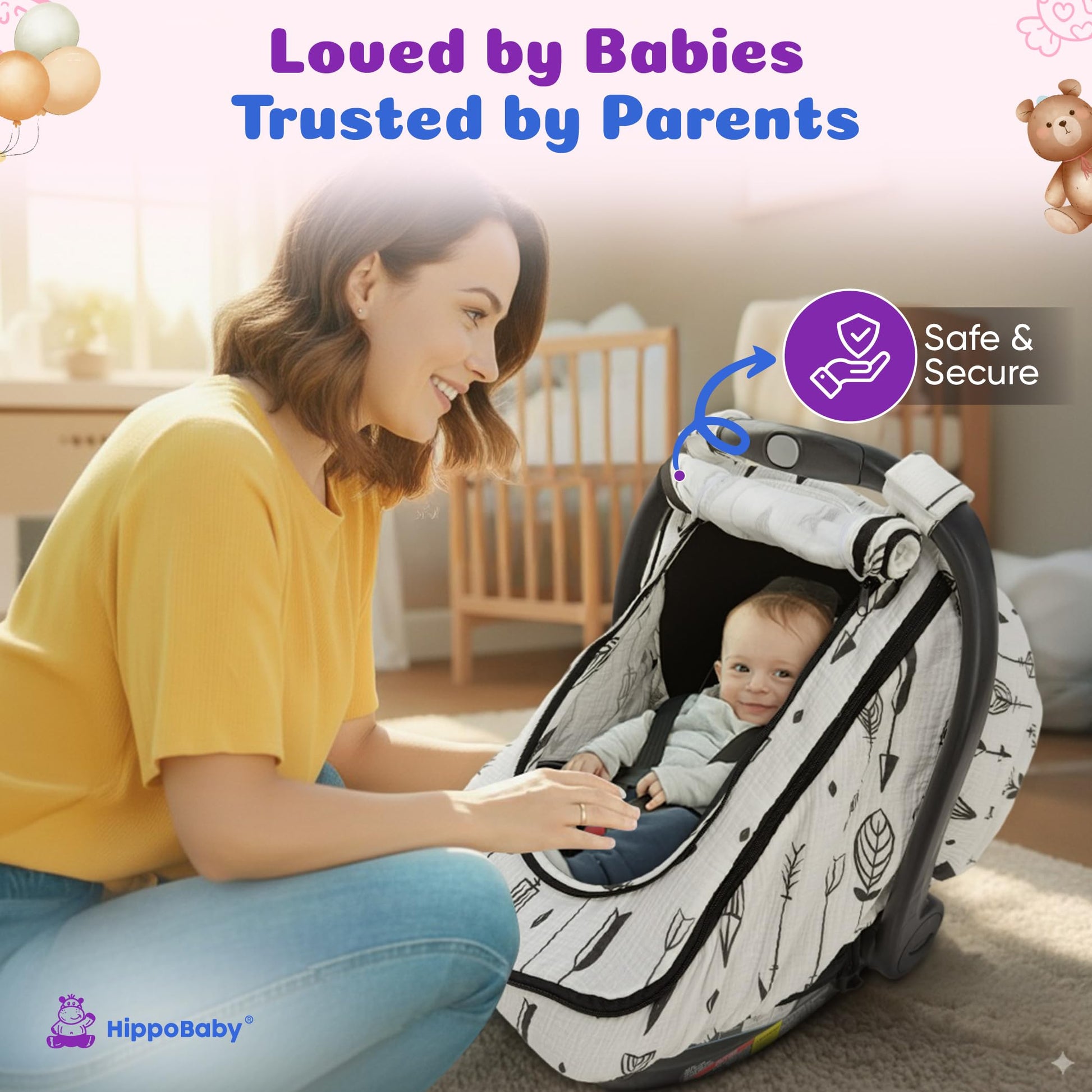 HippoBaby Car Seat Cover for Babies with 100% Cotton Muslin Material | Breathable Carseat Cover for Boys and Girls | Infant Car Seat Canopy for Boys and Girls (Arrows)