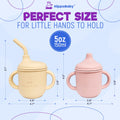 - PERFECT SIZE FOR LITTLE HANDS: At 5 ounces (150 mL), these 100% food grade silicone training cups for toddlers 1-3 are just the right size for small hands to grasp and drink independently as kids transition from bottles. The silicone baby cup set comes with one 5 oz silicone sippy cup and one 5 oz sippy cup with straw.