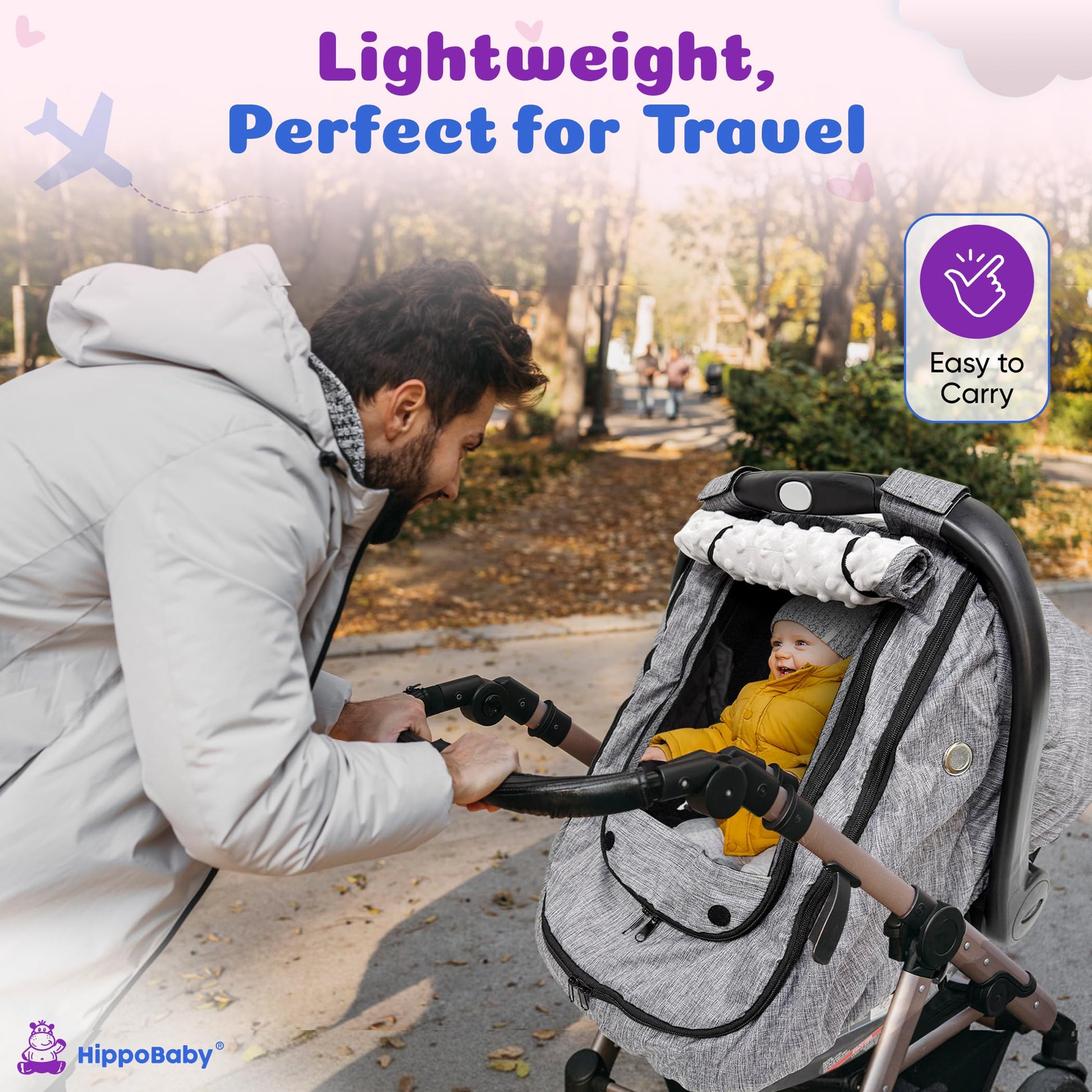 HippoBaby Waterproof Baby Car Seat Cover | Windproof Carseat Cover for Babies | Infant Car Seat Cover for Boys, Girls & carseat Covers Baby Girl | Universal Fit (Gray)