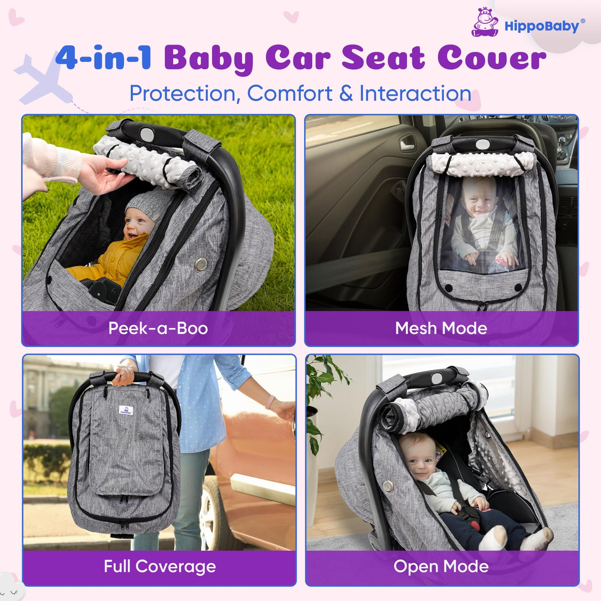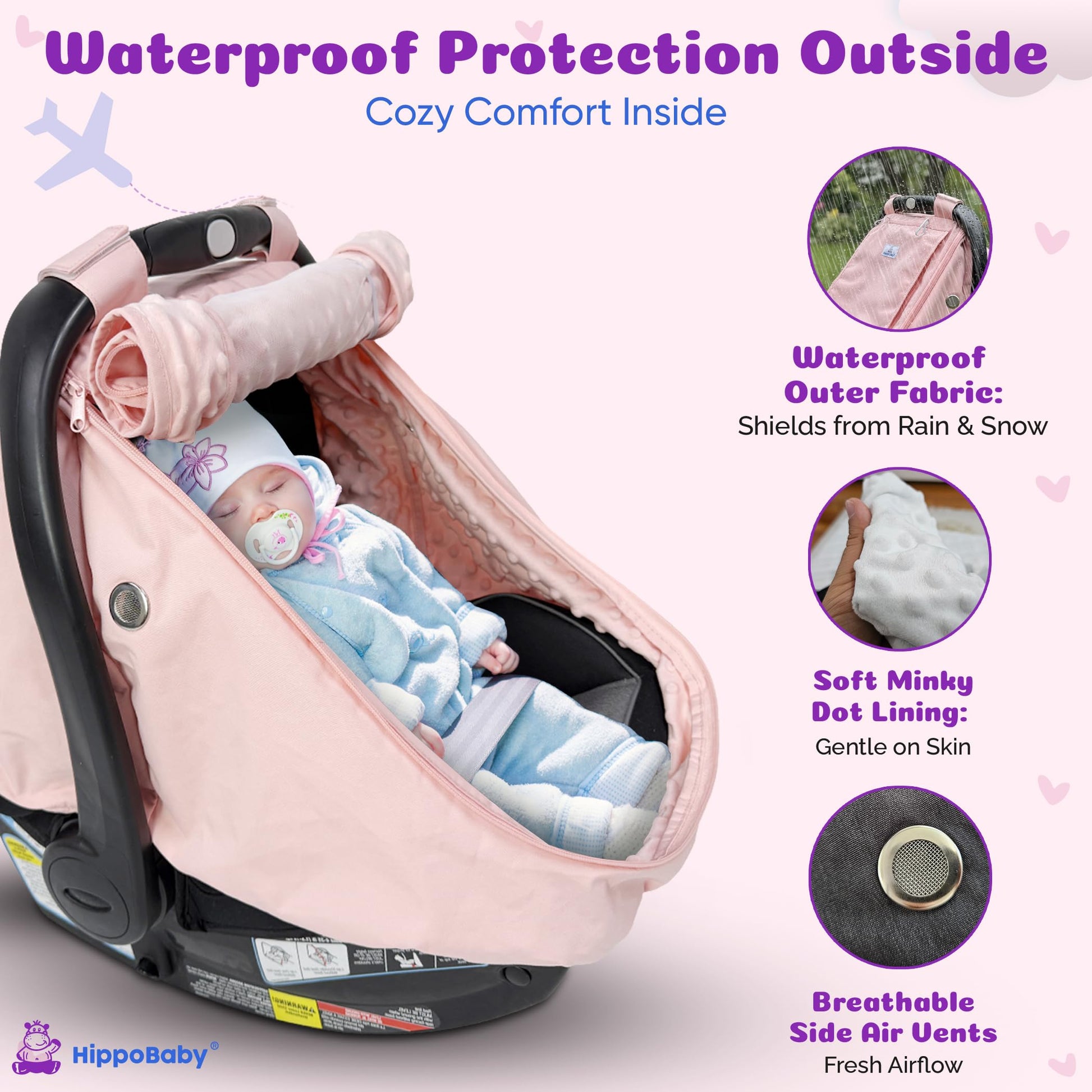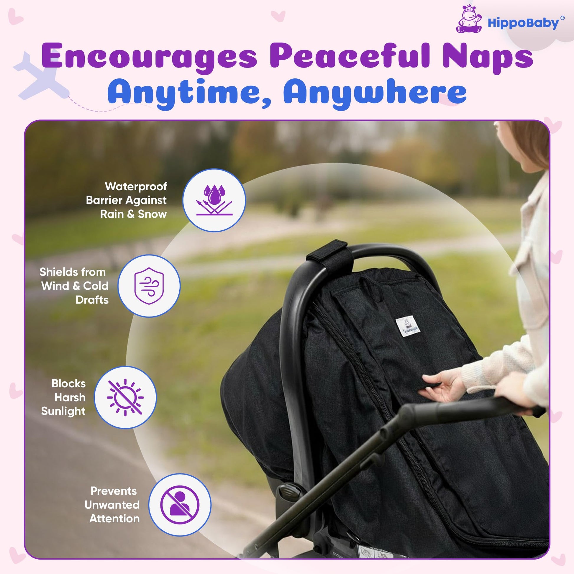 - Superior Weather Protection - HippoBaby waterproof baby car seat cover is constructed from a high-quality, durable waterproof outer fabric. This ensures your baby stays dry and comfortable, shielding them effectively from rain, snow, sleet, and other wet weather conditions. The fabric's tight weave provides excellent wind resistance, preventing chills and maintaining a cozy temperature inside the car seat. This waterproof carseat cover is designed for year-round use, A must-have car seat cover for baby carseat, offering full weather protection with a snug and universal fit for daily use.